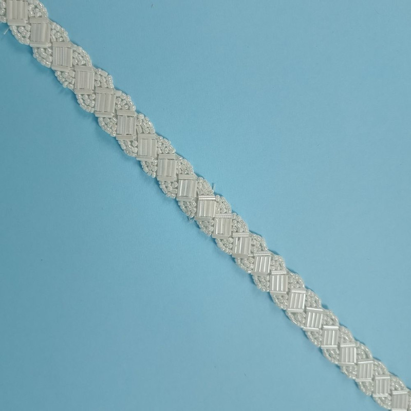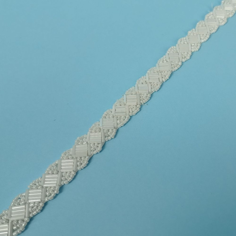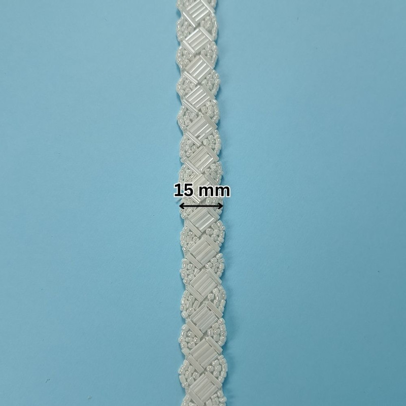 Praktična i dekorativna traka namenjena za ušivanje na haljine, bluze, kostime i druge tekstilne proizvode. Napravljena od kvalitetnog materijala, laka je za rad i lepo leži na tkanini. Pogodna je za dodavanje jednostavnih, ali efektnih detalja na odeći i modnim dodacima.