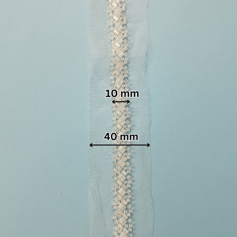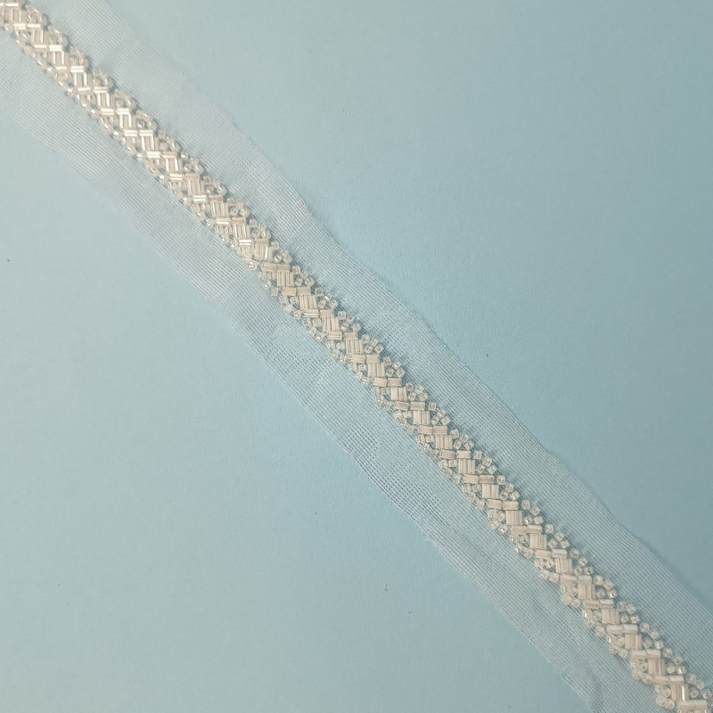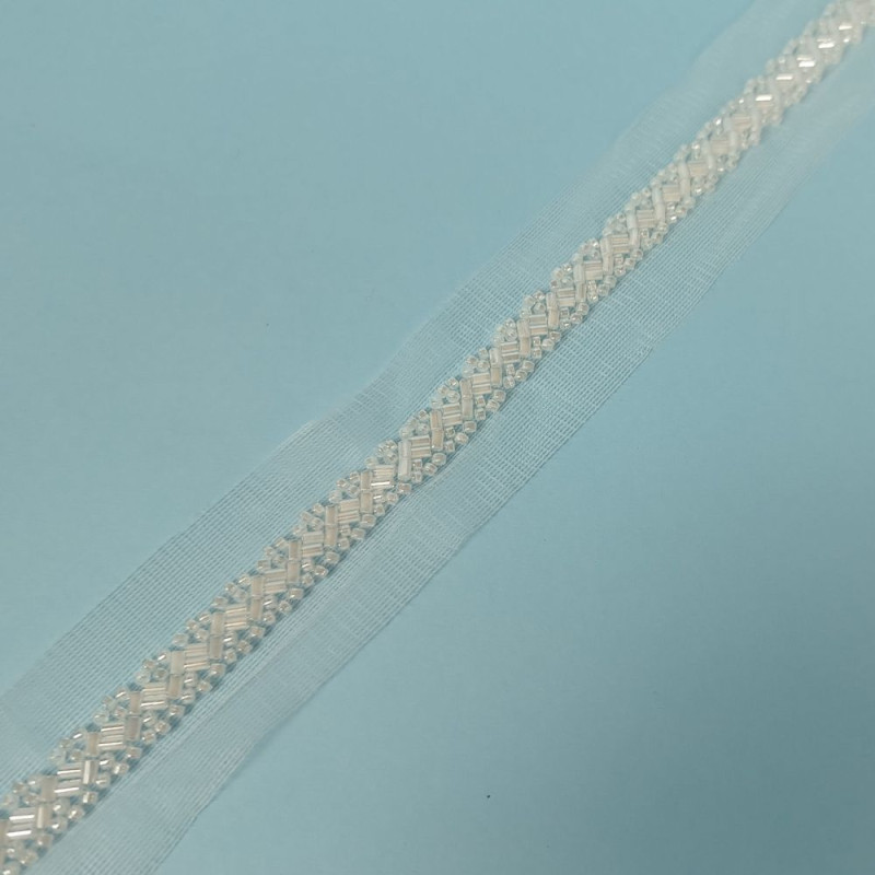 Praktična i dekorativna traka namenjena za ušivanje na haljine, bluze, kostime i druge tekstilne proizvode. Napravljena od kvalitetnog materijala, laka je za rad i lepo leži na tkanini. Pogodna je za dodavanje jednostavnih, ali efektnih detalja na odeći i modnim dodacima.